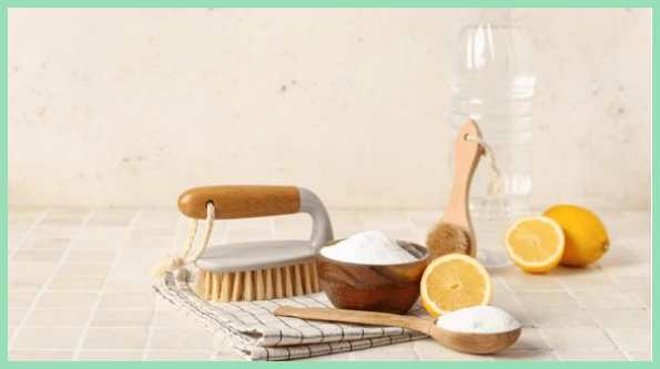 - 싱크대, 가스레인지, 오븐 등의 표면에 뿌리고 15분 정도 둡니다.